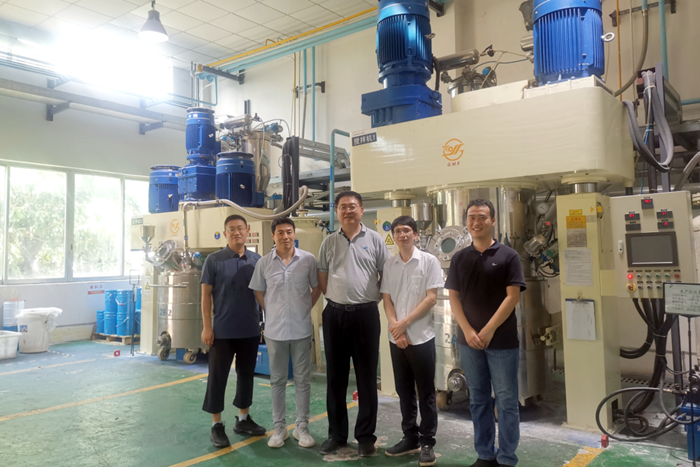 6月20日,北京化工集團黨委副書記、總經理陳宇專程來到華騰新材廣東國望公司,專題調研2萬噸/年功能性聚氨酯粘接材料生產建設項目,即“退城入園”項目。華騰新材領導班子成員一同調研。
