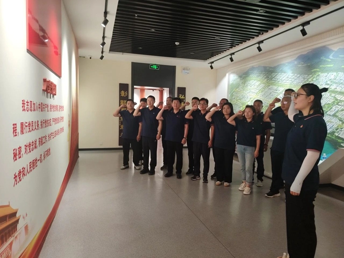 凜然先輩骨,濃濃雁翎情。在黨旗面前,全體黨員莊嚴(yán)宣誓。在講解員的介紹下,大家認(rèn)真聆聽(tīng)白洋淀人民在抗日戰(zhàn)爭(zhēng)期間艱苦斗爭(zhēng)的生活和與敵人浴血奮戰(zhàn)的英雄事跡。一張張照片、一行行文字、一個(gè)個(gè)實(shí)物,沖破歷史的脈絡(luò)直抵靈魂。