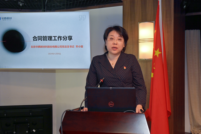 化研院黨總支書記助理李志勇圍繞制度體系建設(shè)和內(nèi)控合規(guī)工作,華騰新材黨總支書記齊小麗圍繞合同管理分別作交流發(fā)言。