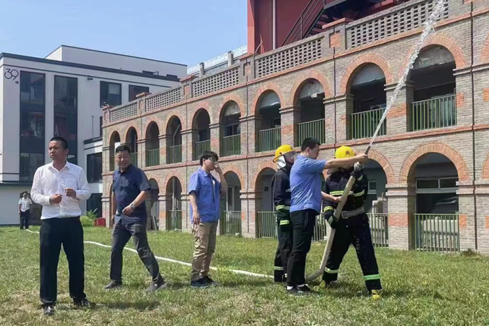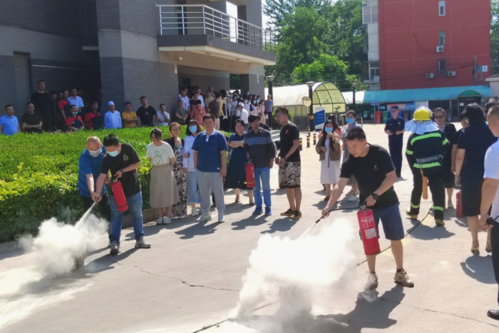 為貫徹落實(shí)北京化工集團(tuán)安全生產(chǎn)月有關(guān)工作部署,推動(dòng)全員參與火災(zāi)防控、壯大群防群治力量,有效提升園區(qū)消防應(yīng)急協(xié)同處置能力, 6月16日上午,華騰易心堂文創(chuàng)園消防培訓(xùn)、演練活動(dòng)在園區(qū)公寓前廣場(chǎng)舉行。此次活動(dòng)由華騰丹陛華和易心堂公司共同組織,參加人員包括房地產(chǎn)公司、華騰丹陛華、易心堂公司、榮源物業(yè)公司以及園區(qū)入駐企業(yè)代表等共計(jì)70余人。